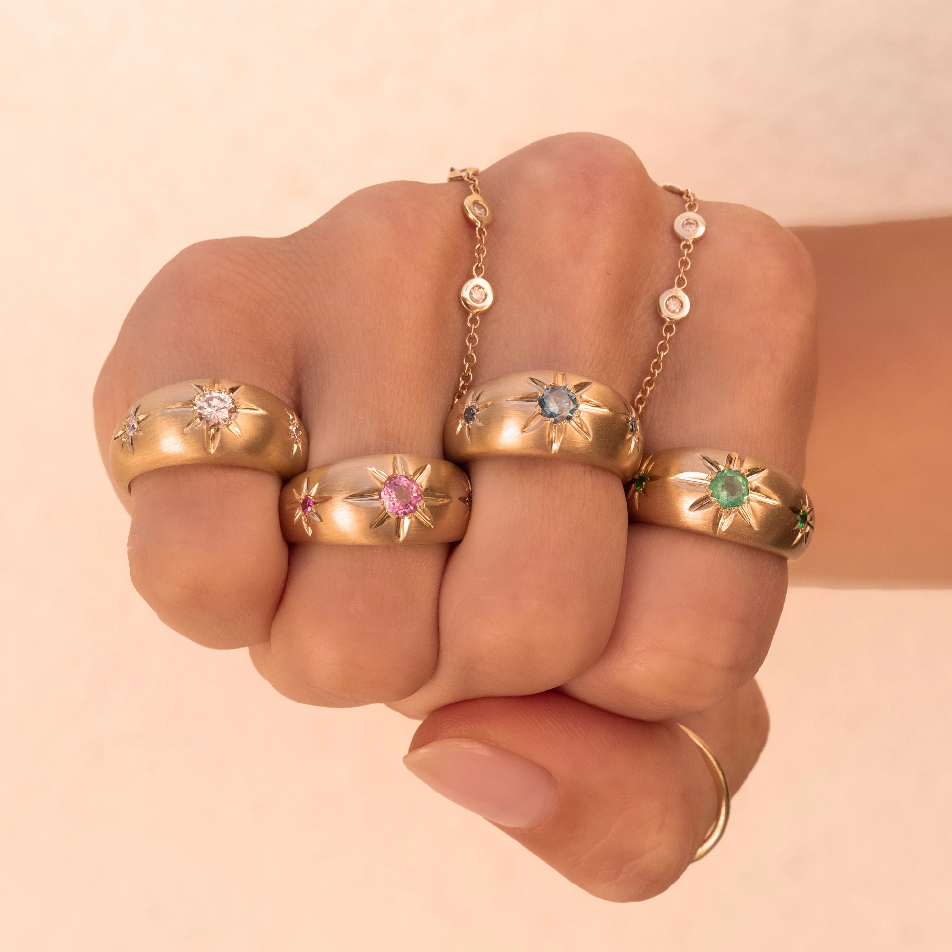 TRIPLE DIAMOND STARBURST DOME RING - JACQUIE AICHE