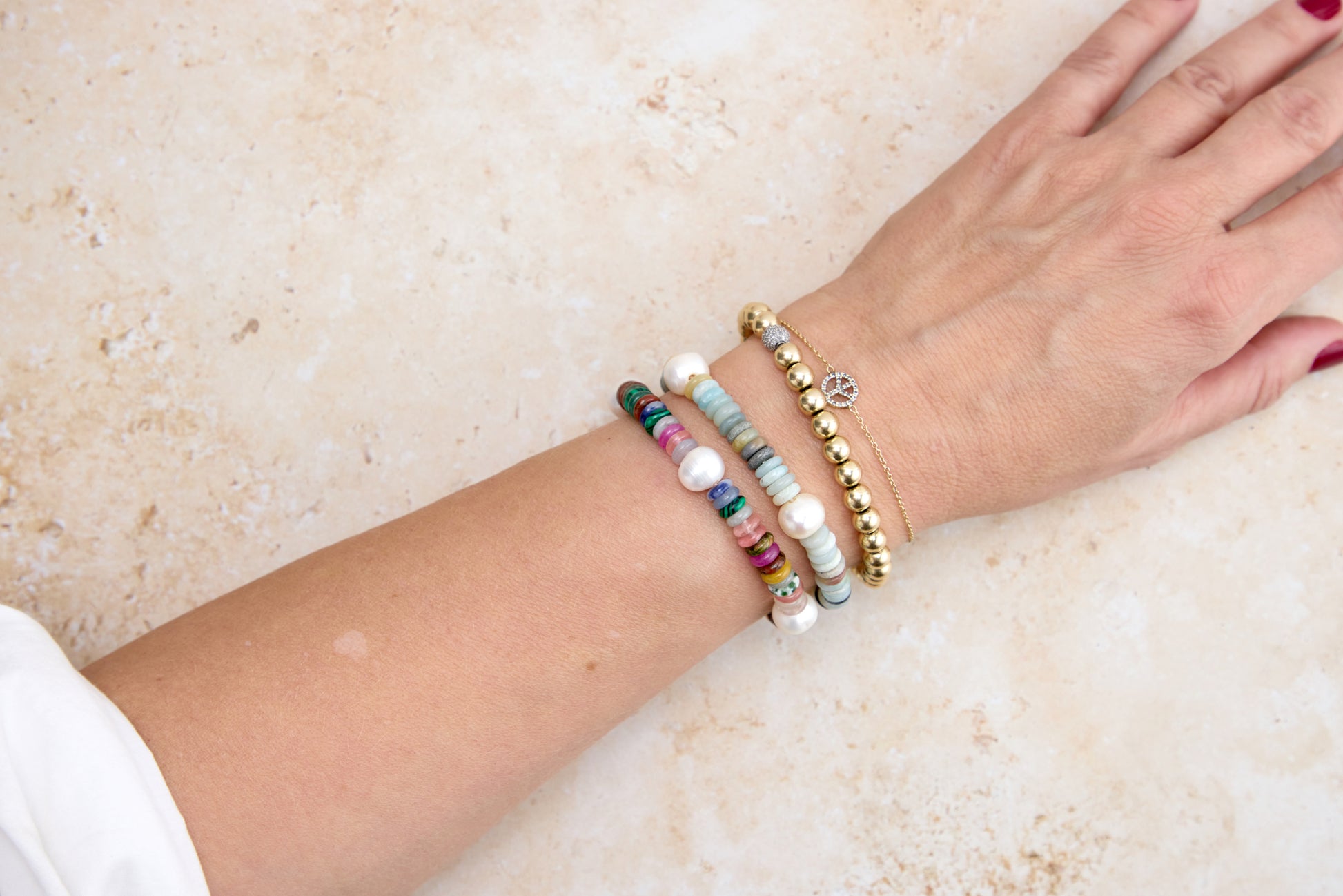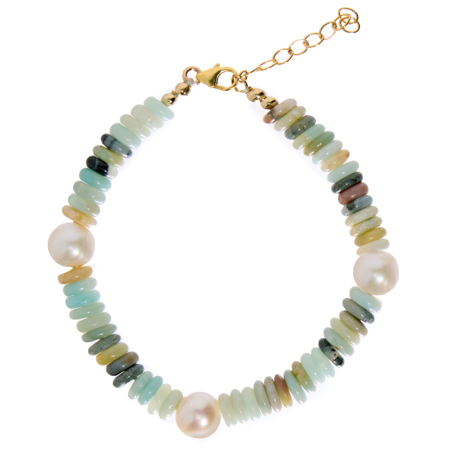 VITAMINNA combines the power behind Amazonite hues in a multi-stone strand promoting clarity, release of toxicity, begging you to trust your intuition. Grounded by 1 centered fresh water pearls for purity, balance, inner wisdom and divine feminine. Pulling in elements of nature, serenity and calm these green colors tap into an array energy from grounding to tranquility.